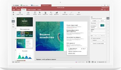 - Полная совместимость с форматами MS Office (.pptx и .ppt) и OpenDocument (.odp)